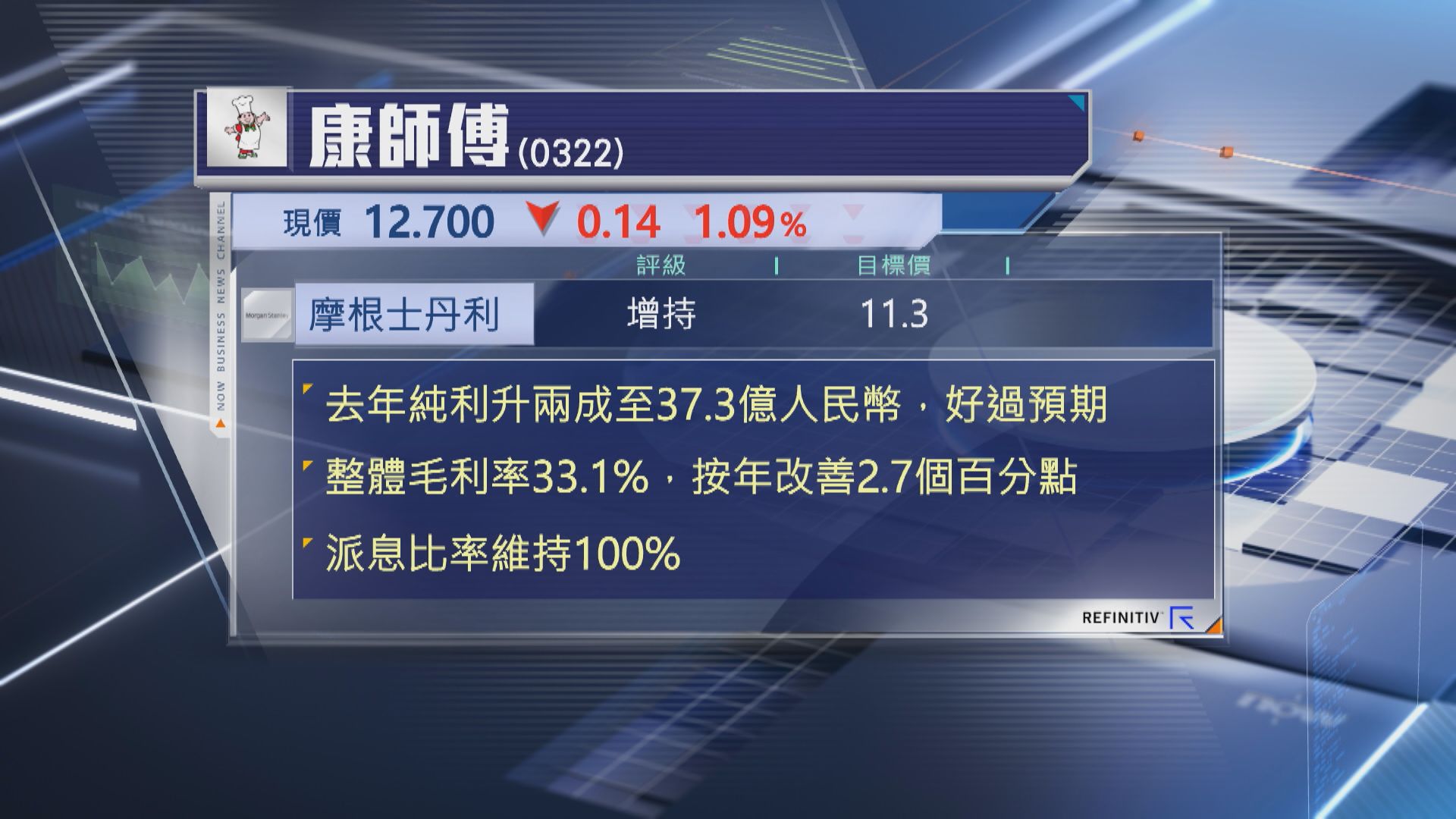 【Now財經台】摩根士丹利表示,康師傅控股(00322)去年純利勝預期。