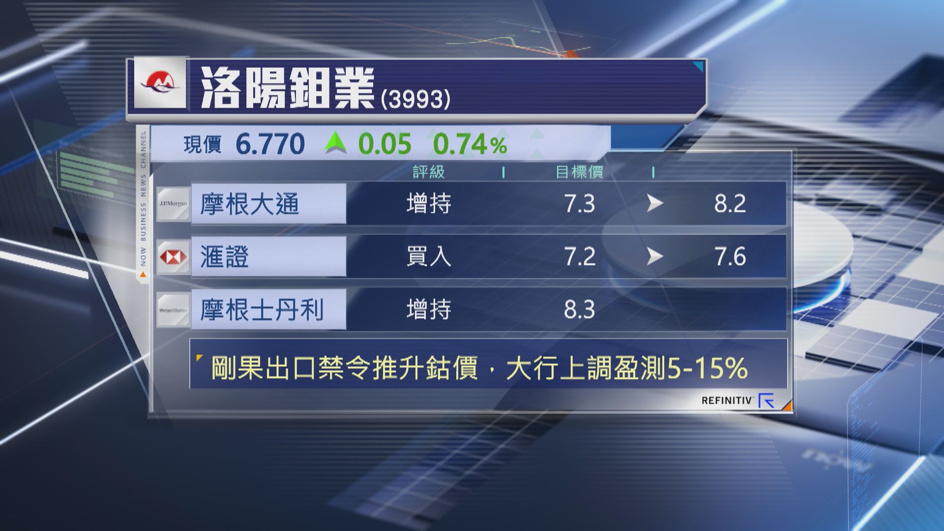 【Now財經台】洛陽鉬業(03993)獲部分大行上調目標價。
