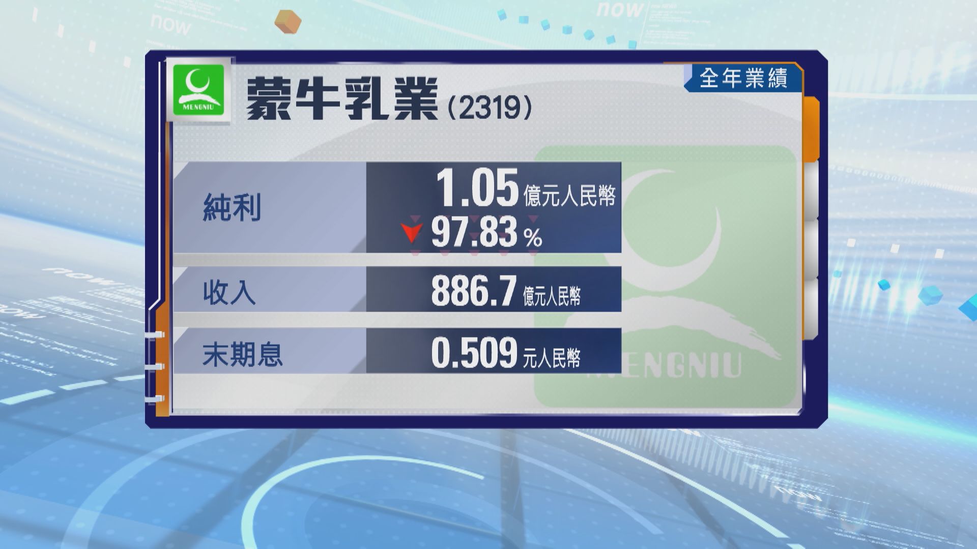 【Now財經台】蒙牛乳業(02319)去年盈利大幅倒退。