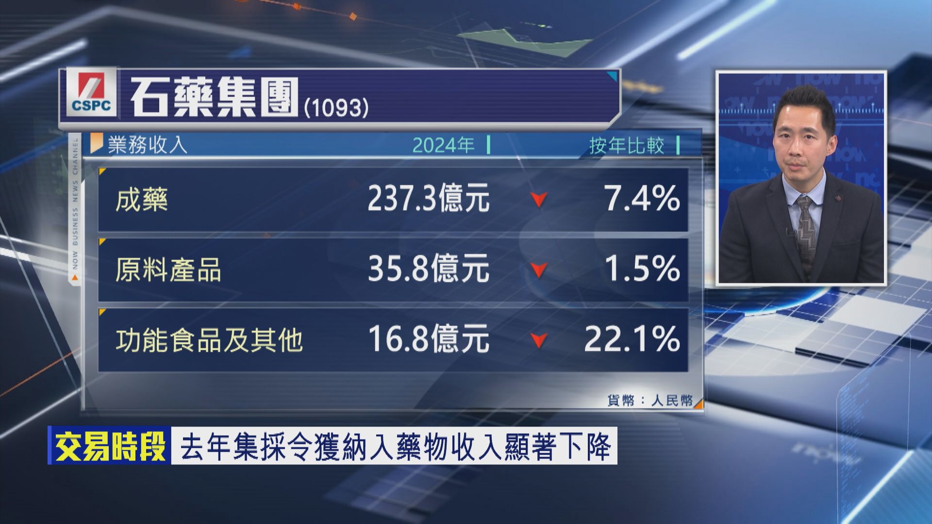 【Now財經台】石藥集團(01093)去年收入按年跌7%,全年就少賺26%,但股價今日(28日)仍有得升,係咪代表市場收貨,還是呢份業績仍搵到亮點?集團指,未來會強攻海外市場,最近就喺美國設立製劑銷售公司,擔唔擔心不斷升級嘅貿易戰會影響石藥業務發展?