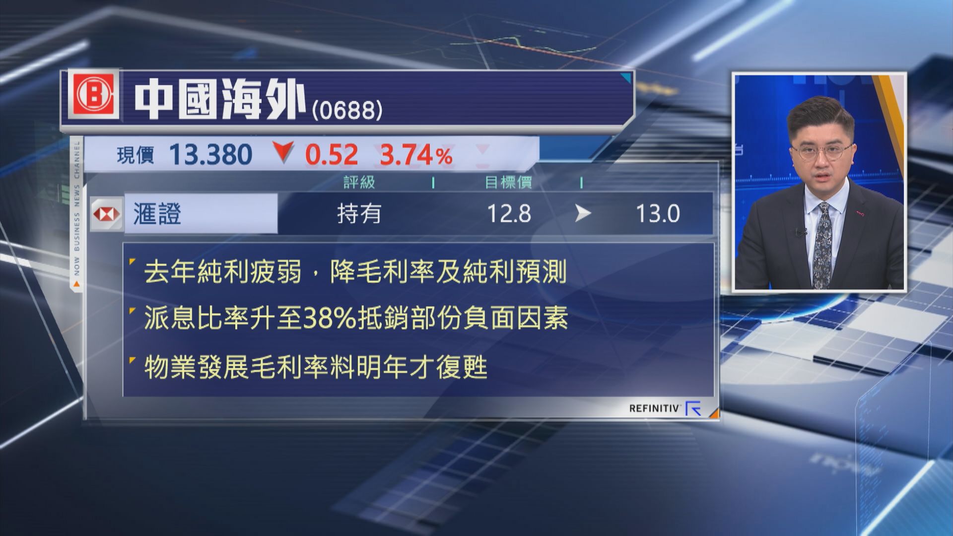 滙證指去年中國海外純利表現差,不過鑑於罕有地將派息比率由33%,上調至38%,抵銷部分業績疲弱因素,但相信相關派息水平難以長期持續,因為目前經常性收入佔比不高。
