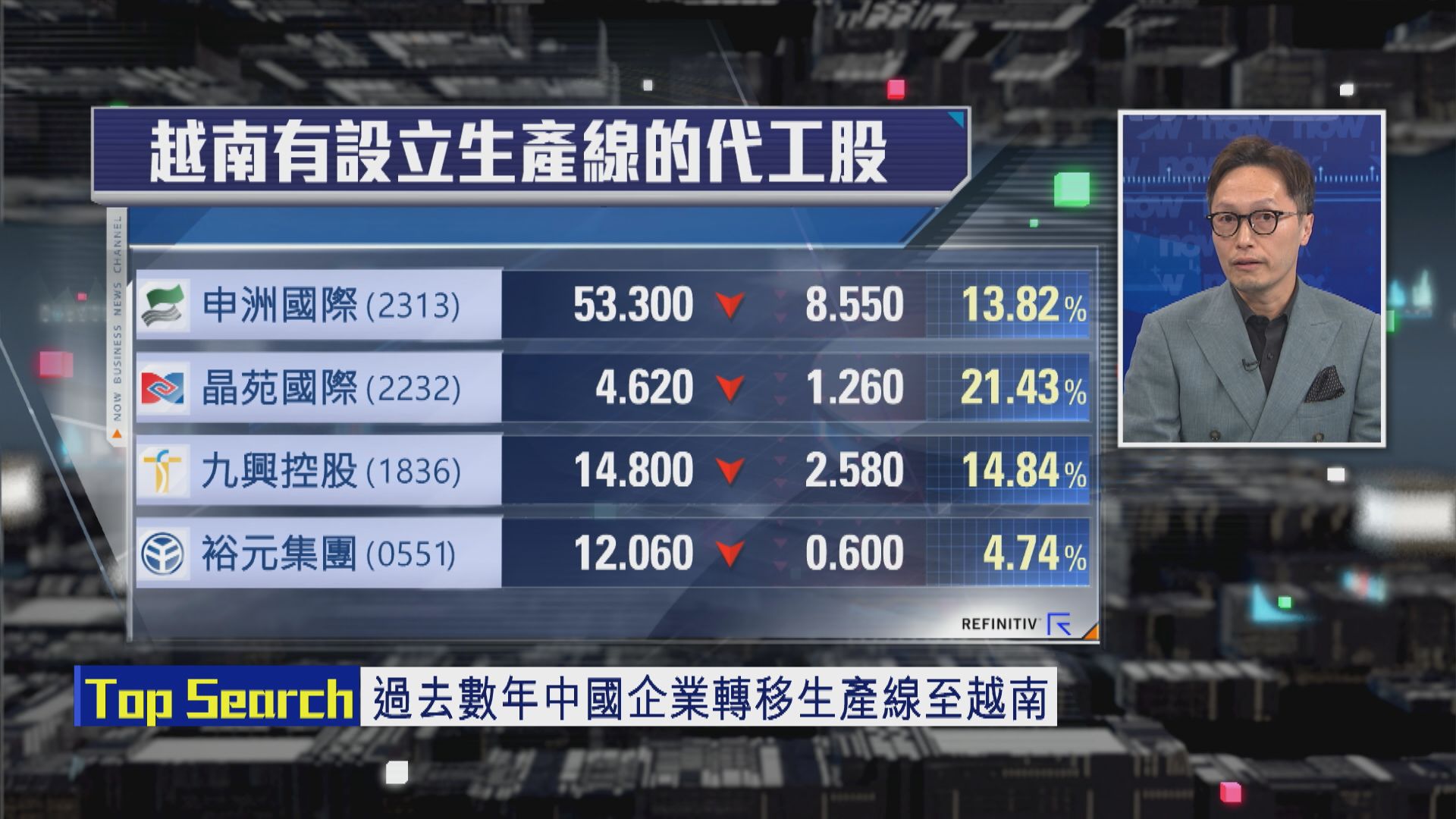 椽盛資本投資總監曾永堅指,在「特朗普1.0」時代,特朗普對中國進行貿易制裁,令不少中國企業轉移生產線至越南、柬埔寨,今次特朗普的關稅政策向東南亞國家開徵關稅,代工股自然首當其衝,所以股價即時有反應。