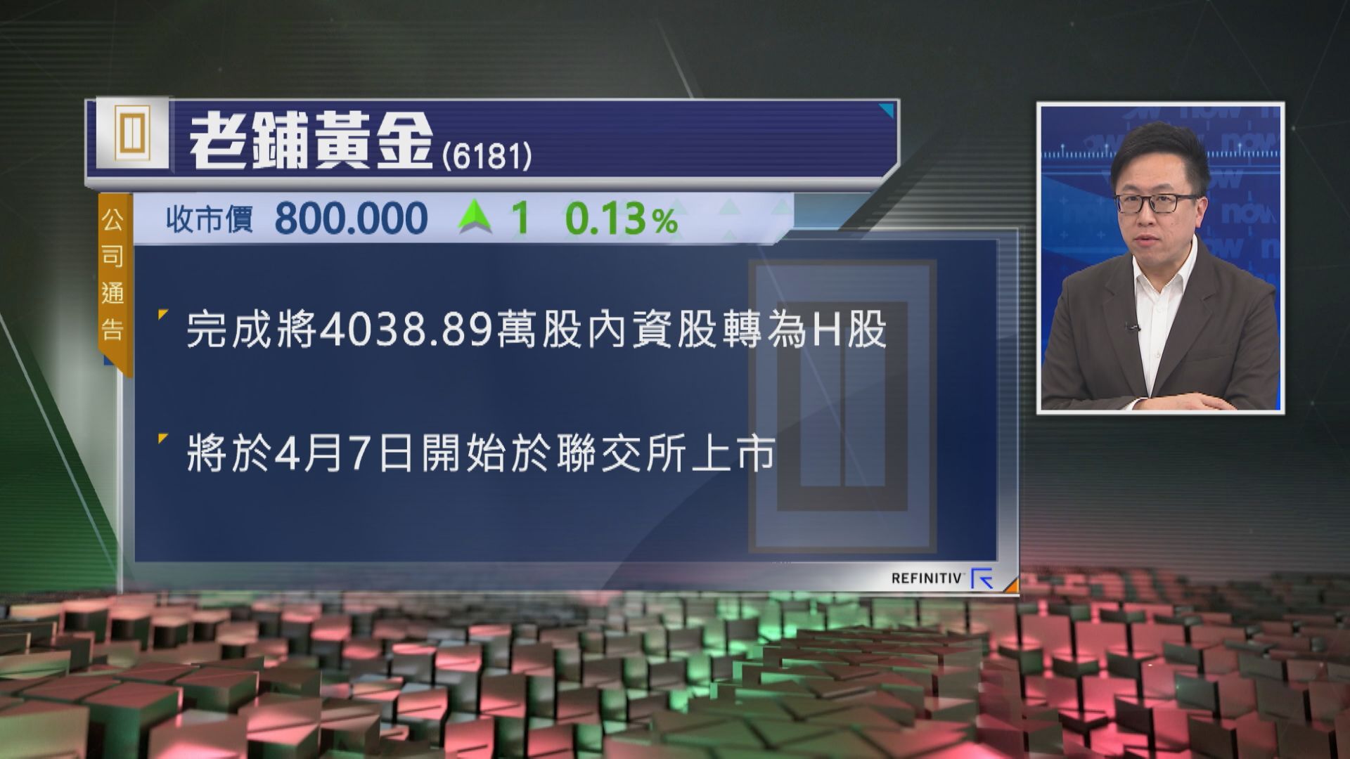 【Now財經台】老鋪黃金(06181)完成將4038.89萬股內資股轉為H股,這批股份4月7日於聯交所上市。