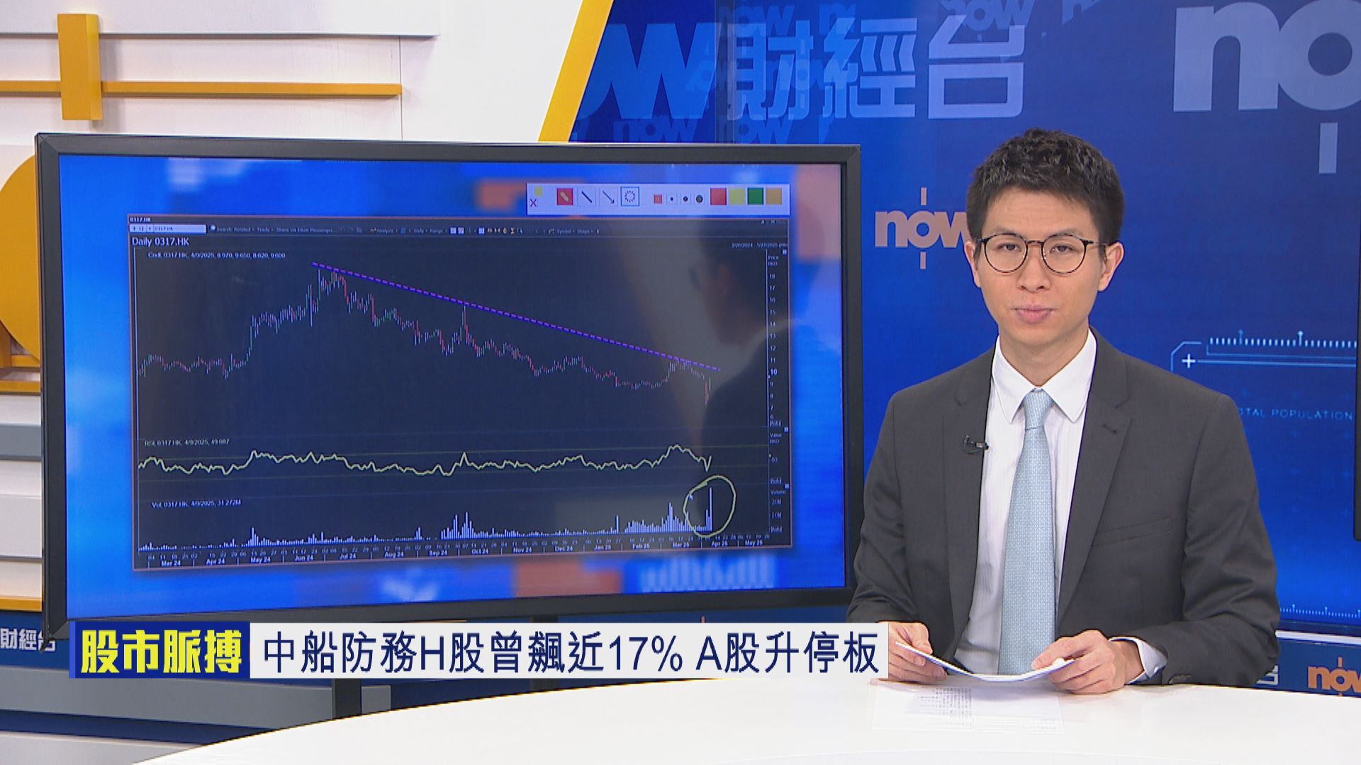【Now財經台】中船防務(00317)今早(9日)高開8%,升幅一度擴大至近17%,成交金額激增至接近3億元,成交股數較過去100日同時段大升12倍。