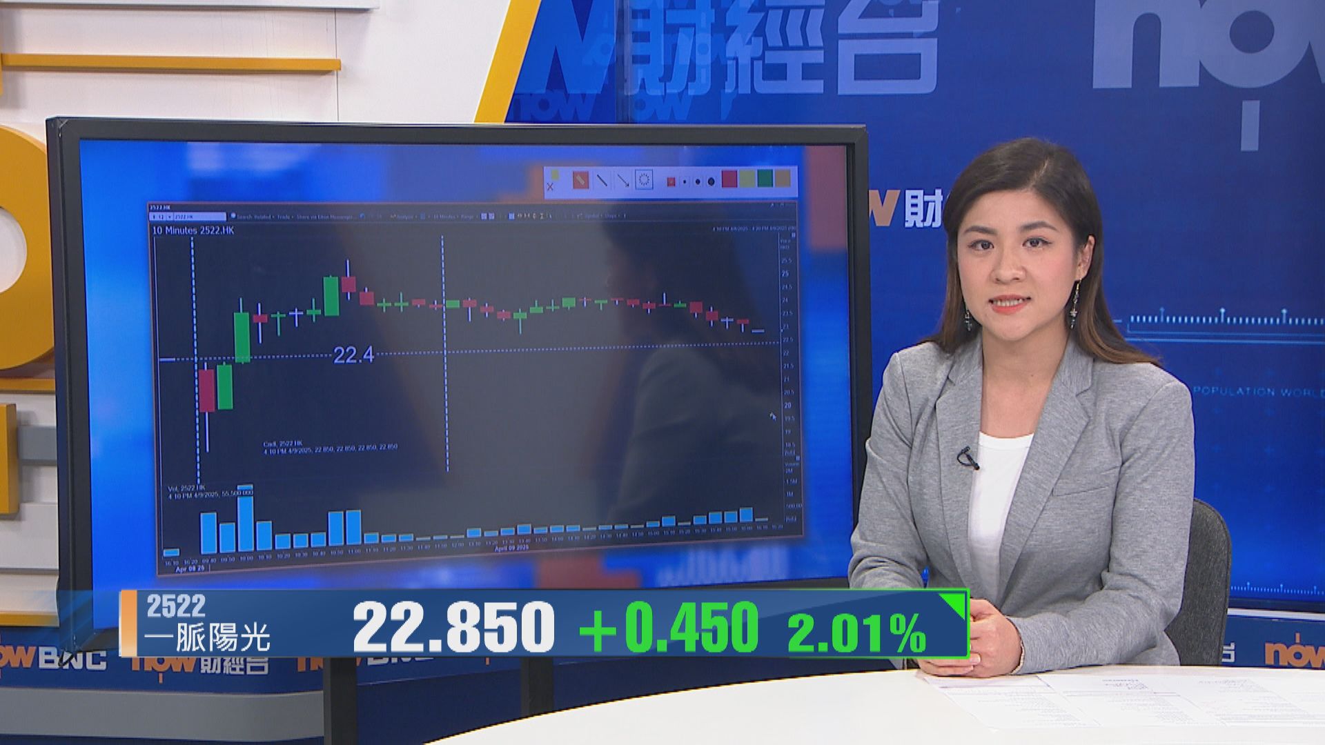【Now財經台】一脈陽光(02522)今日(9日)股價先低後高,低開不足1%,好快轉升,最多升14%,高見25.7元,但收市升幅收窄至2%報22.85元,成交也有3.4億元。
