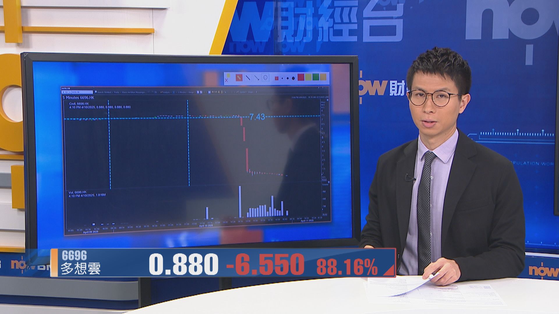 【Now財經台】SaaS軟件即服務多想雲(06696)是今日(10日)跌幅最大港股,尾市突然洗倉式急瀉,收市大跌88%,股價今早平開後,一度升逾3%,見7.68元,創52周新高,但午後突然崩盤式下跌,尾市再破底,創合股後新低,最終以全日低位的0.88元收市,成交股數多達7600萬股,相當於95%已發行股數,同時較過去100日同時段平均大增12倍,市值跌穿1億元。