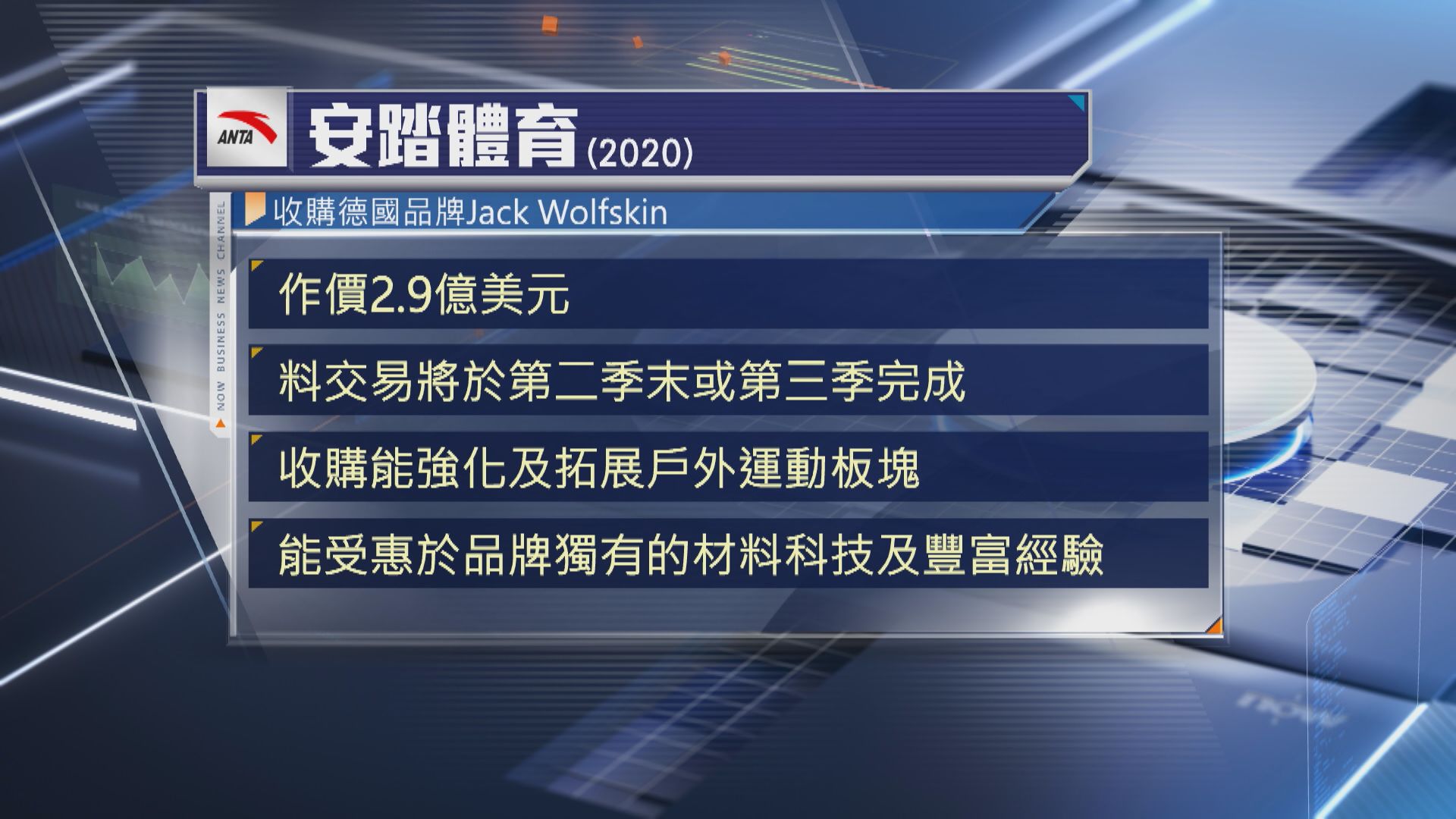 安踏表示,有意以2.9億美元,相當於22億港元,收購Jack Wolfskin,料交易將於今年,第2季末或第3季完成,公司認為,收購符合公司策略並能強化及拓展戶外運動板塊,集團亦能受惠於品牌獨有的材料科技及德國工程團隊的經驗。