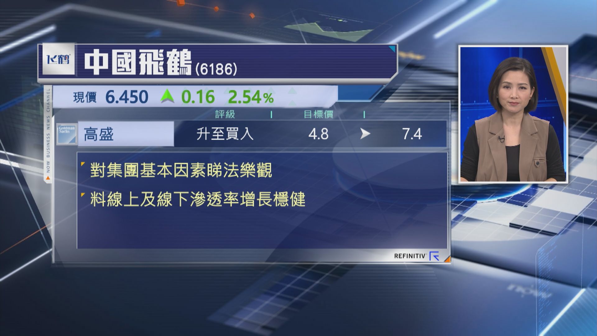 【Now財經台】高盛上調中國飛鶴(06186)評級。