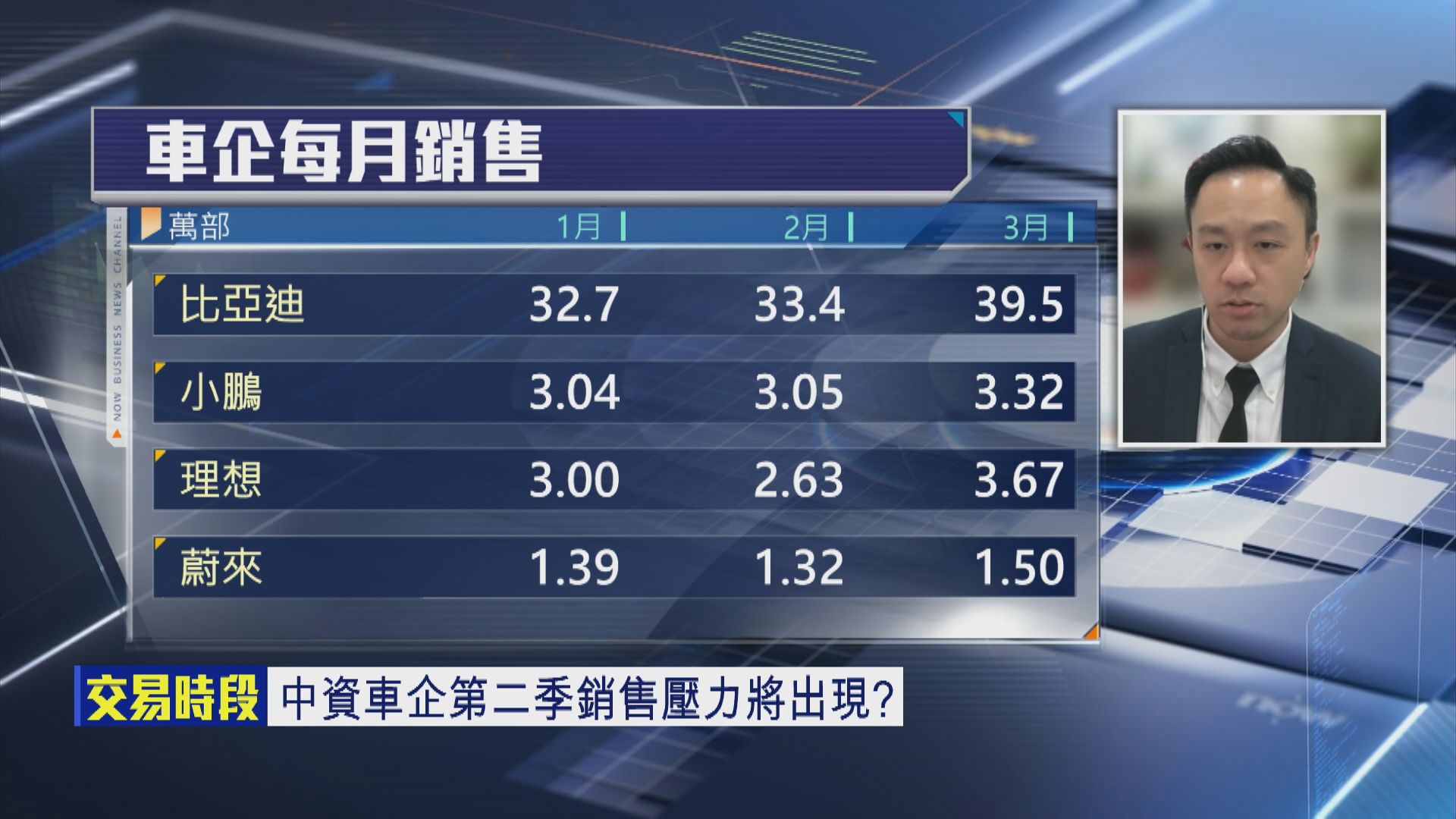 【Now財經台】內地車企今年首3個月嘅月度交付量唔錯,其中,比亞迪股份(01211)之前發盈喜,預期首季純利最多大升逾1倍。股價方面,暫時以比亞迪及小鵬汽車(09896)較強勢,已經回補上周一(7日)急挫嘅下跌裂口,車股應該點揀?