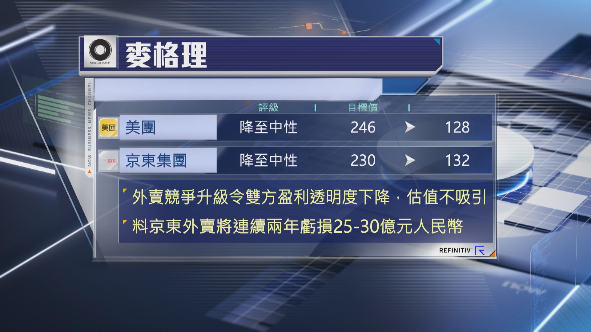 麥格理指出,京東近期以激進的策略進軍外賣市場,情況跟2023年抖音進入本土市場相似,預期將觸發大規模價格戰,包括向商家提供更多補貼,導致企業短期盈利受壓,令估值變得不吸引,因此,下調兩隻股份評級,並建議投資者對股份保持觀望。