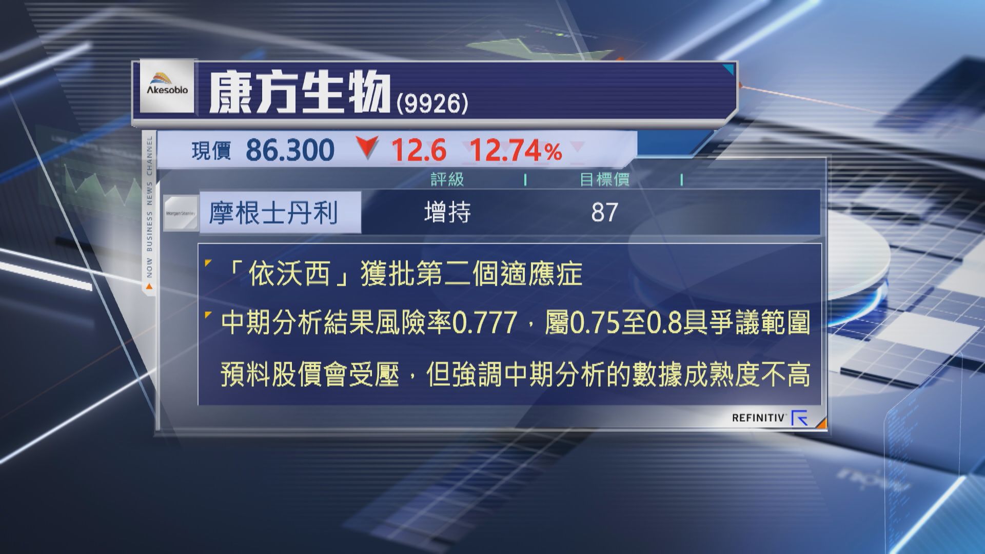 摩根士丹利指,按公司公布「依沃西」第2個適應症的2期臨床試驗,中期分析結果風險率為0.777,屬於具爭議範圍,相信會對股價構成壓力。