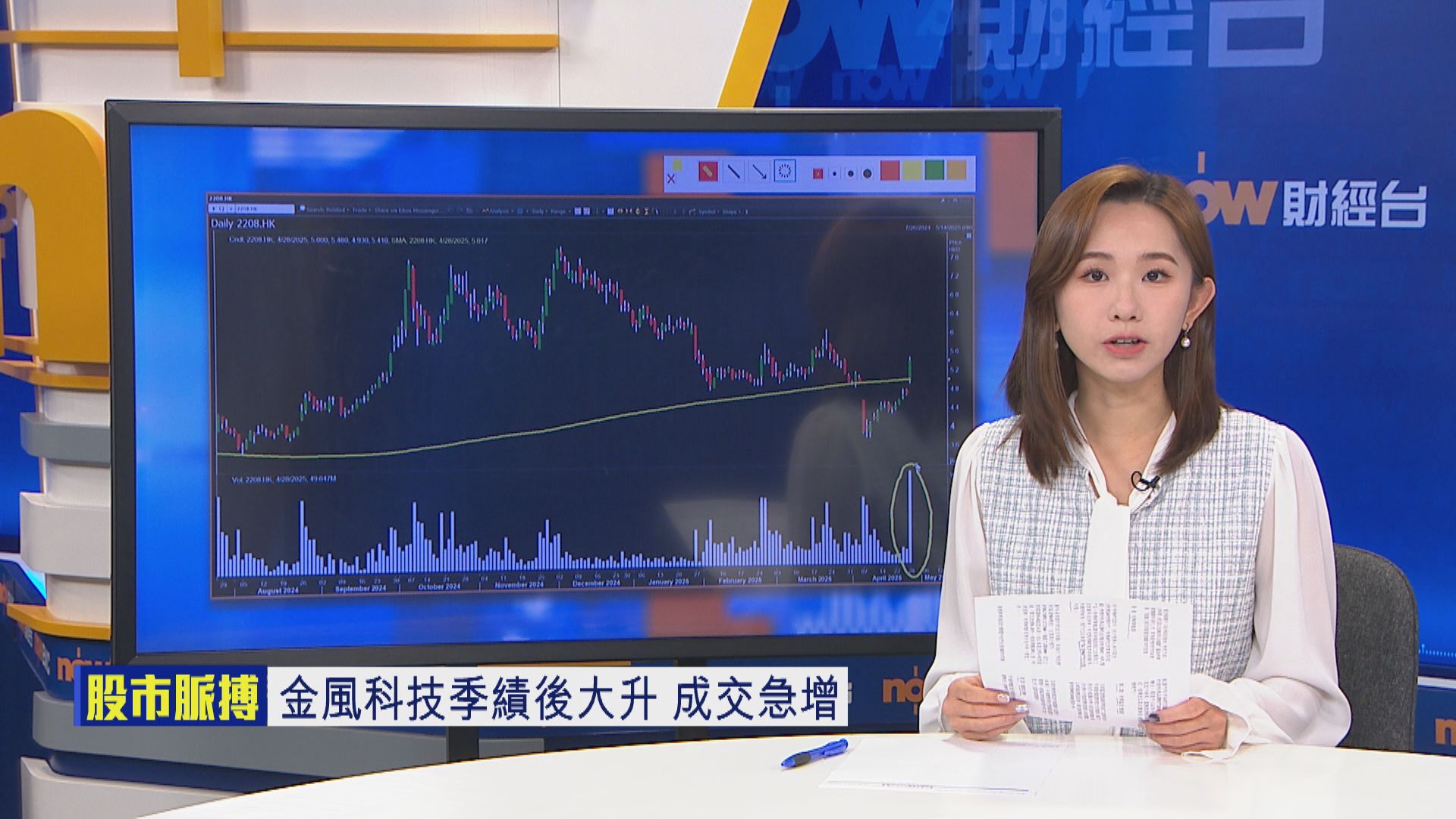 【Now財經台】績後大升的金風科技(02208)今早(28日)開市已有資金追入,高開6%,一開市已重上5元水平,11時後一度升逾16%,高見5.48元,連升6日,成交股數較過去100日同時段平均成交增加8倍。