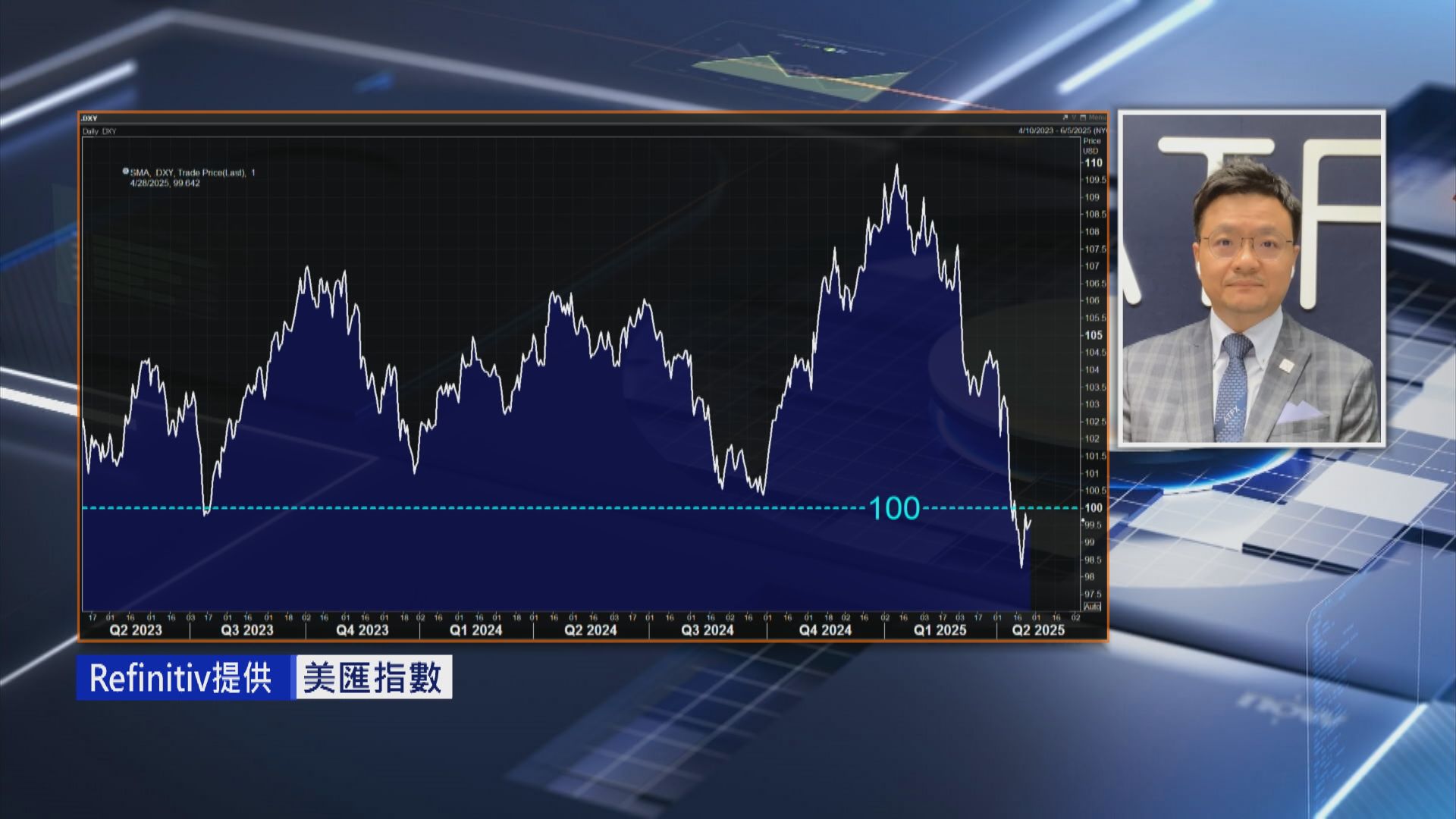 亞太區首席分析師林銘添指,市場一方面受美國總統特朗普(Donald Trump)關稅政策的不確定性影響,另一方面亦擔心美國債務問題,美匯指數早前跌穿100,反映市場對美元的投資信心減弱 ,若本周經濟數據不理想,可能形成美元另一波沽壓。