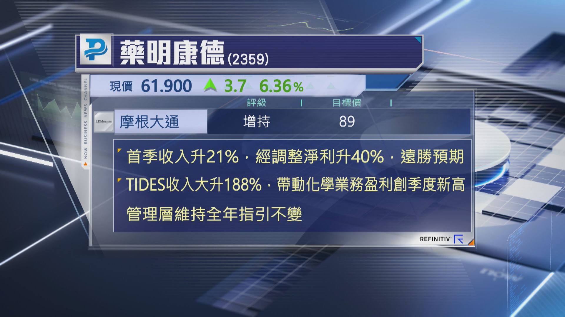 【Now財經台】摩根大通指出,藥明康德(02359)首季業績勝預期。