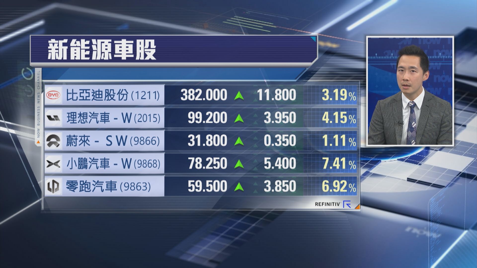 【Now財經台】內地新能源車企陸續派4月交付成績表,多隻新能源車股今日齊「踩油上」,龍頭比亞迪股份(01211)尾市一度升3.3%,高見382.6元,交付量按年增長最勁嘅小鵬汽車(09868)及零跑汽車(09863)午後再升多浸,係咪大市氣氛都係其中一個幕後推手?點睇車企4月嘅交付量?