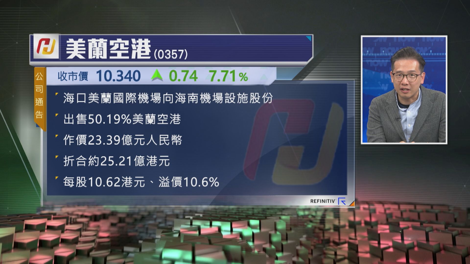 【Now財經台】美蘭空港(00357)易主,上海上市的海南機場將成為大股東,每股出價10.62元。
