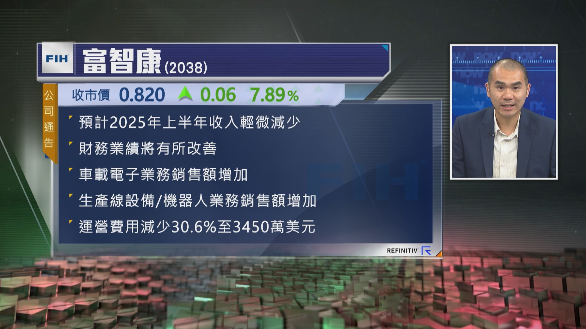 【Now財經台】富智康(02038)第一季業績扭虧為盈,賺107.2萬美元,期內毛利率由1.61%升至3.17%。