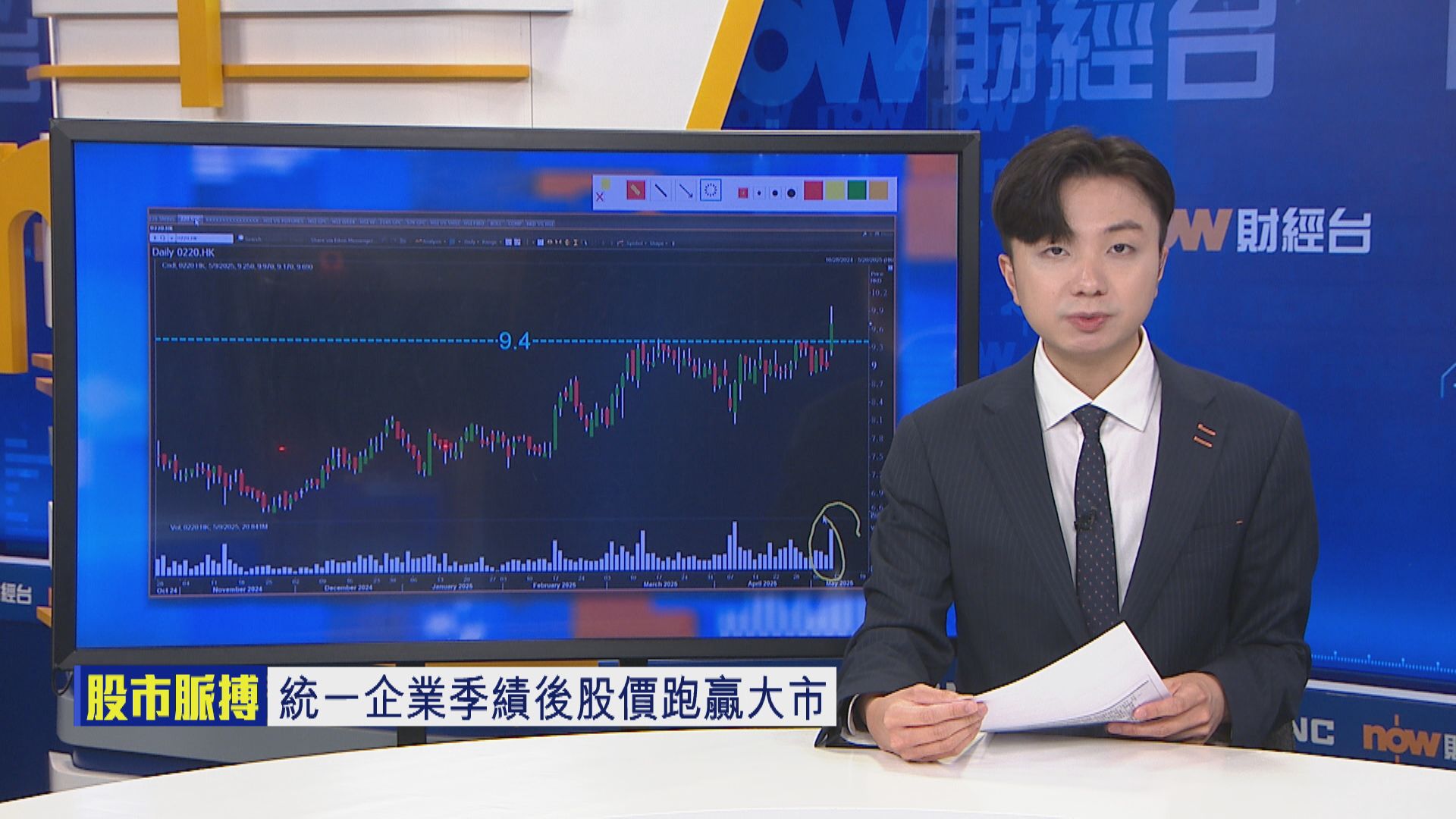 【Now財經台】統一企業中國(00220)股價今日(9日)跑贏大市,高開3%後,升幅一度擴大至11%,高見9.97元,成交股數較過去100日同時段大增逾7倍,暫時成交金額約2億元。