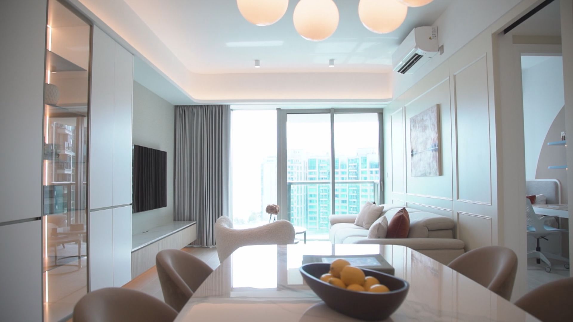 【Now財經台】今集《樓計飾》帶大家參觀白石角一個面積逾千呎的3房單位,設計師以米白色作主調,運用不同石材配搭弧形線條,打造歐式輕奢風格。