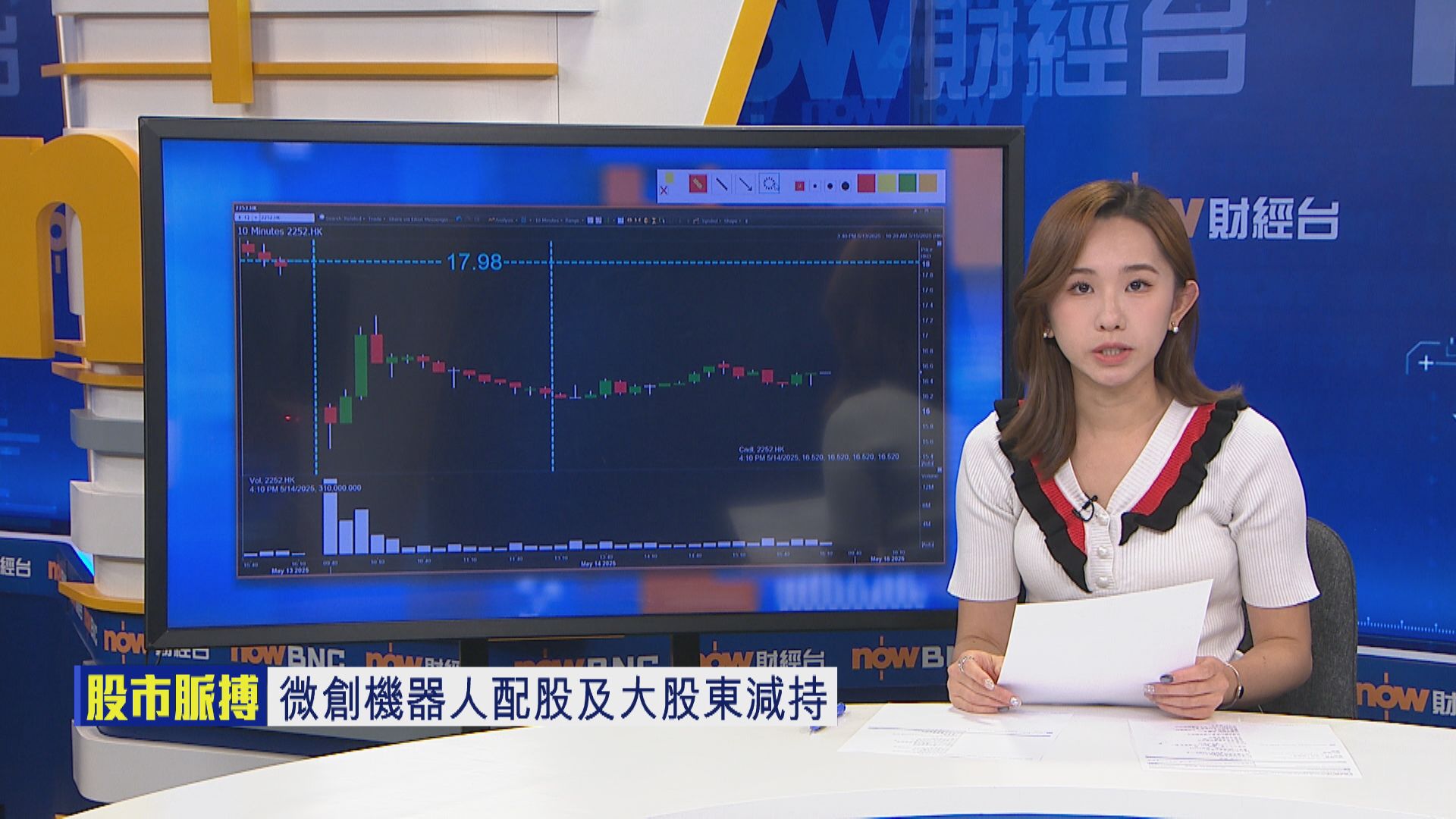 【Now財經台】微創機器人(02252)今早(14日)低開逾10%後,跌幅好快已擴大至逾13%,低見15.6元,險守配股價15.5元,其後跌幅逐步收窄,收市報16.52元,大跌8%,全日成交金額逾14億元。