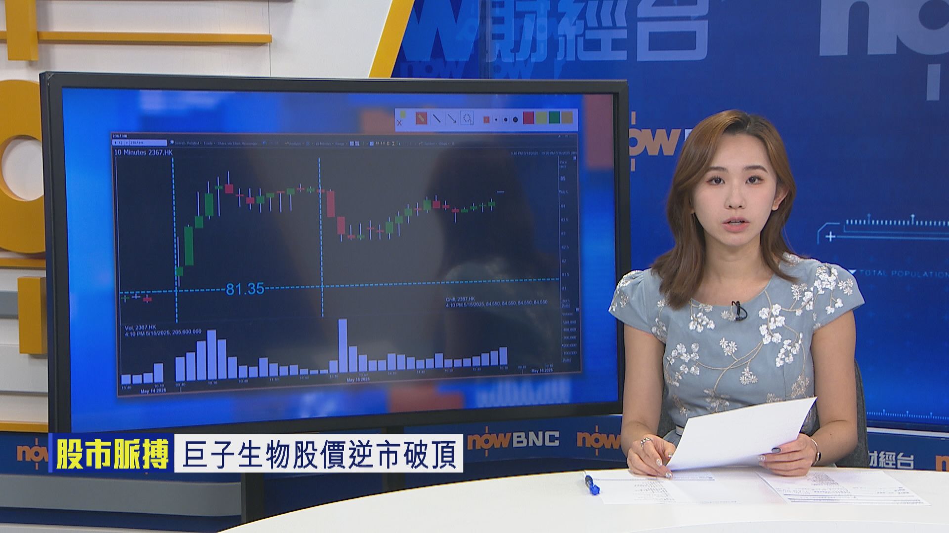 【Now財經台】巨子生物(02367)股價今日(15日)逆市破頂,今朝平開後,升幅一度擴大至近5%,高見85.35元,收市報84.55元,升近4%,全日成交金額逾5.44億元。