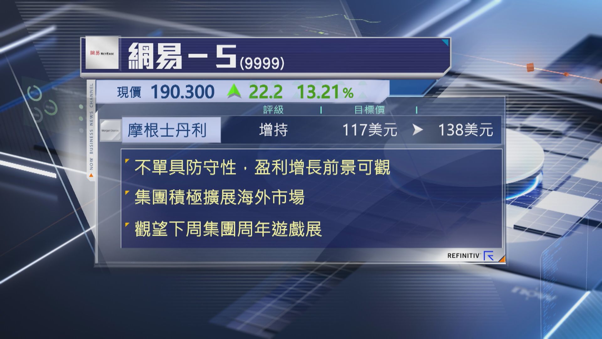 摩根士丹利則認為,網易不單具防守性,盈利復甦及增長前景亦可觀,又指集團積極擴展海外市場,近期推出的遊戲亦成功,相信海外市場仍有推廣空間。