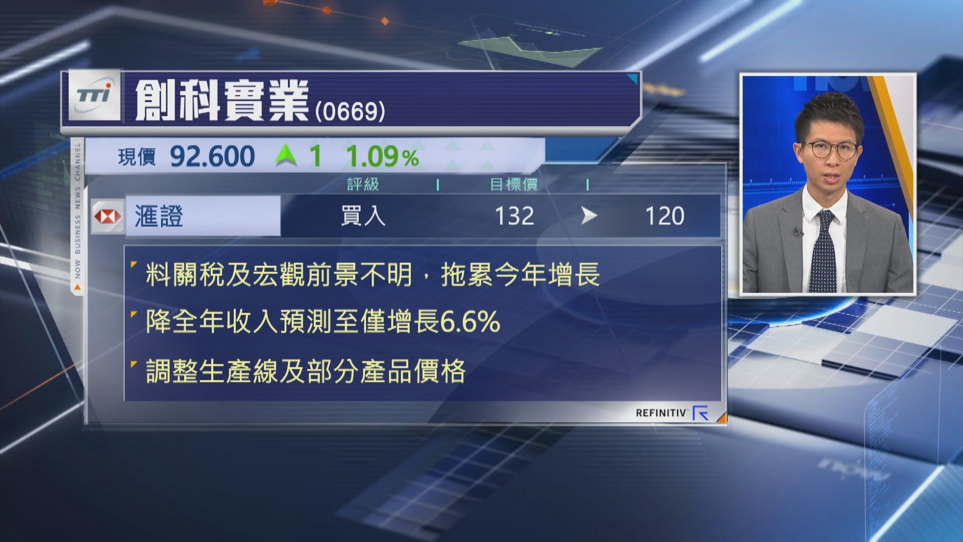 【Now財經台】滙豐證券下調創科實業(00669)目標價近10%。