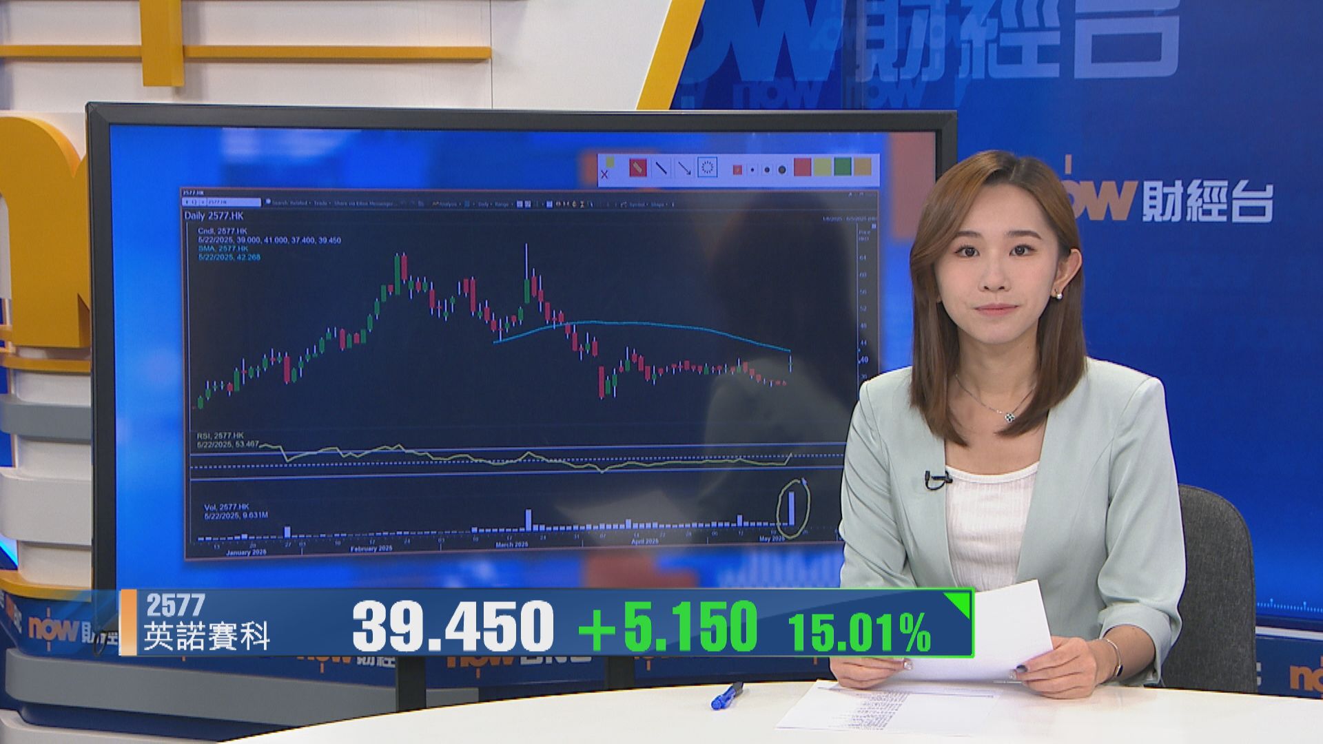 【Now財經台】英諾賽科(02577)股價今日(22日)高開逾13%後,升幅一度擴大至近20%,高見41元,其後升幅收窄,成交股數較過去100日同時段大增23倍。