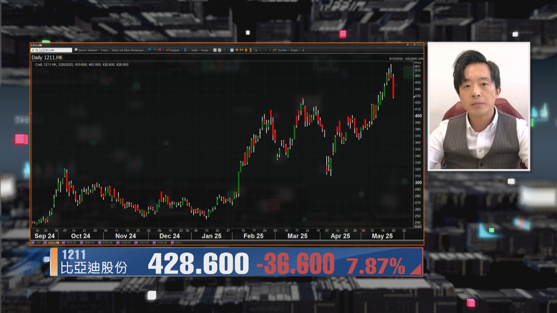 Stevan補充,比亞迪股價回調至420元水平就有吸引力,而吉利依家喺18.6元水平已有吸引力,短線借内捲及減價消息製造機會,但佢提醒,最好等股價企穩或有反彈跡象才做部署。