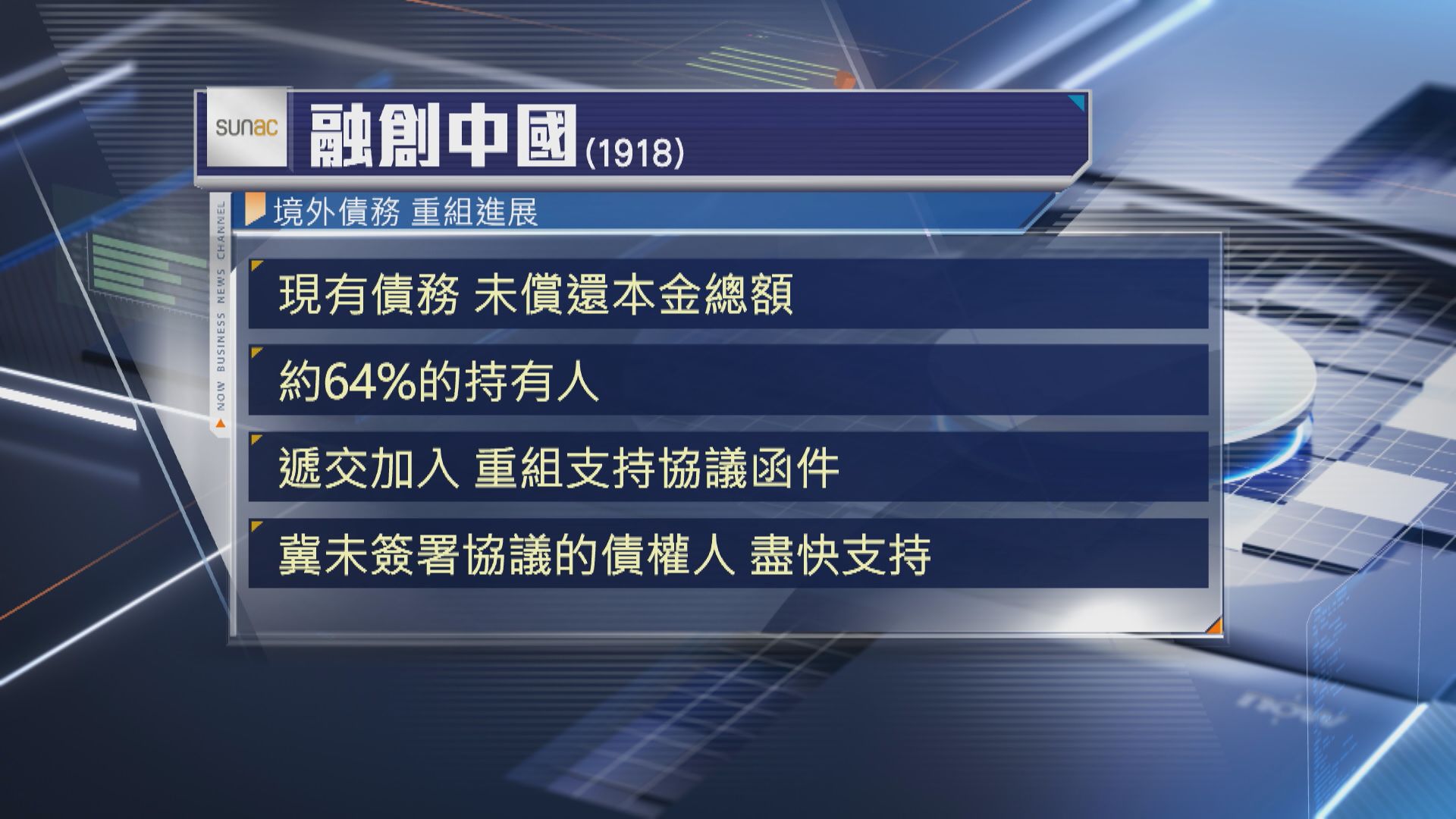 【Now財經台】融創中國(01918)獲得約64%債務持有人支持債務重組協議。