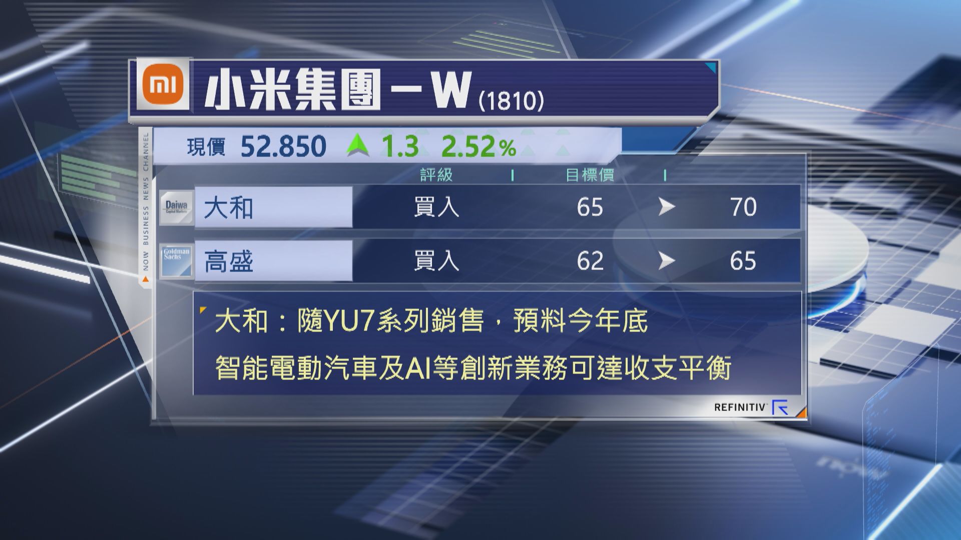【Now財經台】小米集團(01810)公布季績後,獲部分大行調高目標價。