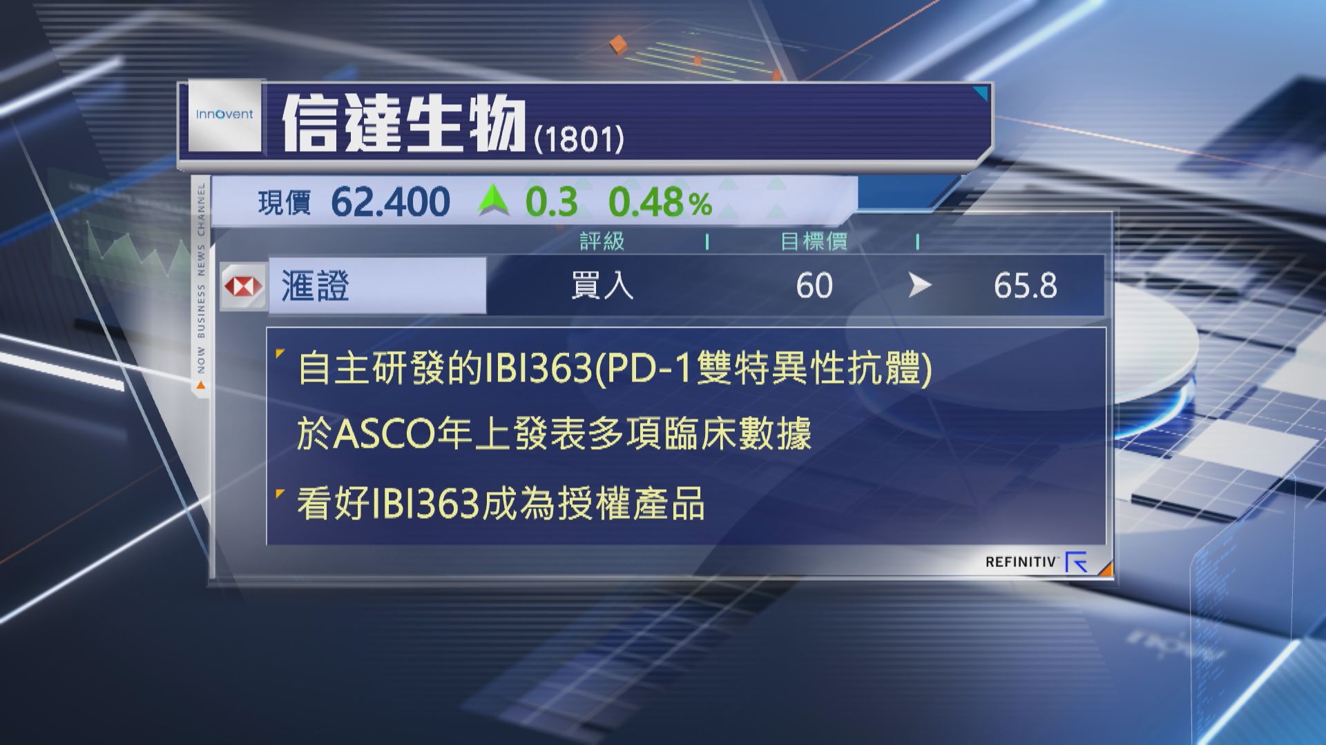 由於全球大型藥廠對PD-1雙特異抗體藥物興趣濃厚,信達的IBI363具成為授權藥物潛力,雖然信達股價今年年已累升約60%,大幅跑贏大市,但今年預測市盈率(PE)僅約8倍,估值仍然吸引。