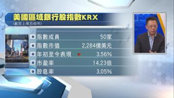 【Now財經台】由美國50間地區銀行組成的「區域銀行股指數」(KRX),截至上周五(6月27日)止,今年累跌近3.6%。過去3年及5年,美國地區銀行股總回報,分別跑輸標指20至約48個百分點,呢類股份值唔值得投資?