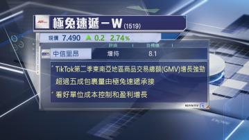 該行指,TikTok第2季在東南亞地區的商品交易總額(GMV)增長強勁,有逾50%包裹快遞都是由極兔速遞承接,因此,預期極兔速遞第2季包裹量增長,將高於管理層預期介乎25%至30%,將有助維持單位數成本。