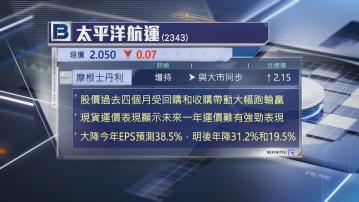 【Now財經台】摩根士丹利表示,太平洋航運(02343)股價於過去4個月已大幅跑贏,將評級由「增持」降至「與大市同步」。