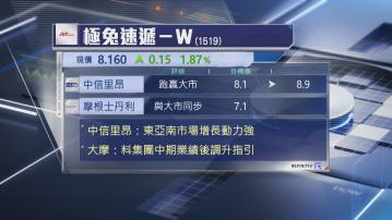摩根士丹利就估計在8月底公布中期業績後,極兔速遞或會溫和調升全年盈利指引,集團或會就東南亞市場給予更積極看法,但估計內地市場方面,處理量及盈利指引或有下調壓力,維持股份7.1元目標價及「與大市同步」評級。