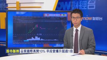【Now財經台】品質國際(00243)股價今日(11日)高開逾10%後,升幅一度擴大至逾1倍,高見0.43元,升上8個月高位,成交股數較過去100日平均激增270倍,暫時成交金額逾460萬元。