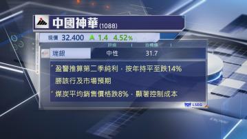 【Now財經台】中國神華(01088)發盈警,預期上半年純利最多按年跌22%,不過,瑞銀指出,神華第2季業績勝預期。