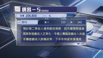 【Now財經台】野村上調網易(09999)目標價近4%至242元,維持「買入」評級。