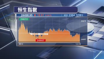 恒生指數今日(17日)高開29點後,走勢反覆,早段一度升154點,其後倒跌,收市跌18點,報24498點。大市全日成交縮減至逾2364億元。