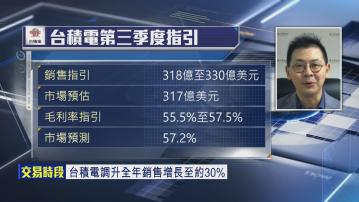 【Now財經台】台積電(TSMC)第2季多賺61%至3983億元台幣,勝預期,集團預期,第3季銷售額介乎318億至330億美元,按季增長約6%至10%,並上調全年銷售增長預測至30%,係咪意味公司對下半年銷售有信心?