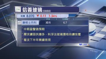 大摩估計相關因素會繼續拖累信義玻璃下半年表現,維持評級「減持」及原有目標價不變。