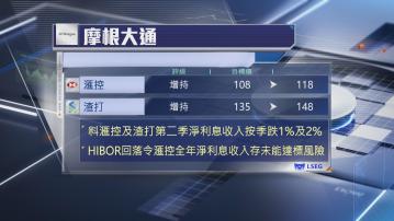 摩通上調滙控目標價9%至118元,渣打則調高近10%至148元,兩者均維持「增持」評級。