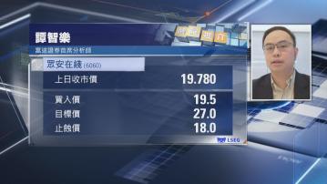 【Now財經台】富途證券首席分析師譚智樂推介眾安在綫(06060)