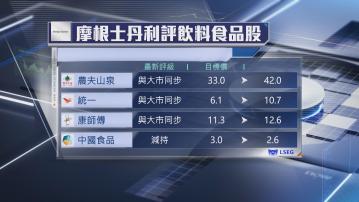 大摩指,該行覆蓋的食品及飲料股自7月以來累計反彈7%,因市場憧憬內地當局持續推出「反內捲」政策,有望紓緩通縮問題,不過,由於內需仍然疲軟,短期難令整個消費板塊獲向上重估。