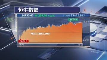【Now財經台】本港股市低開高走,恒生指數終止4日跌勢,升逾200點。