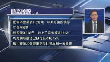 【Now財經台】鵬高控股集團(01865)今日(4日)一度炒高逾17%,高見0.3元,其後升幅收窄,公司最新有兩個動作,首先係建議增加法定股本,由1億元增至5億元,同埋配售1.2億元可換股債券(CB),點睇鵬高呢兩個動作?