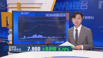 【Now財經台】珍酒李渡(06979)股價今早(12日)一度大升14%,高見8.38元,其後升幅收窄,成交股數較過去100日平均多10倍,暫時成交金額約3.5億元。