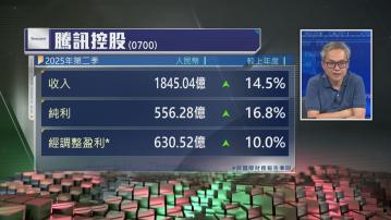【Now財經台】騰訊控股(00700)第二季收入升14.5%,經調整盈利升10%,略好過市場預期。