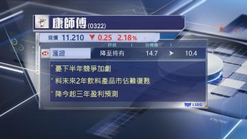 滙證又稱,雖然負面因素已大致反映,康師傅股價下跌空間或有限,但由於對盈利前景悲觀,該行下調集團今起3年淨利預測,並將評級降至「持有」,目標價亦由14.7元降至10.4元。
